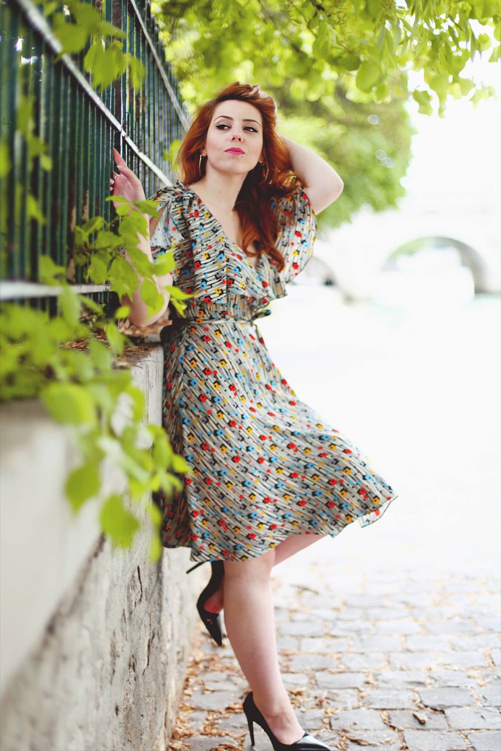 Cette robe légère, fluide, estivale, un brin 70's, c'est le modèle bungalow, et aussi le cadeau d'anniversaire que j'ai reçu pour mes 24 ans. Je crois que je n'aurais pas pu rêver meilleur cadeau ! Et pour l'immortaliser j'ai choisi l'île de la cité et les quais de Seine. Je trouve le shooting vraiment très beau et c'est encore grâce à l’œil expert de Deerily ;)